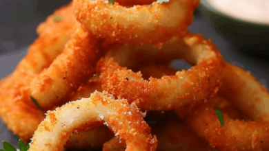 You can prepare your Vegan Cheesy Mozzarella Onion Rings in 55 minutes. Your caloric count from eating your snack will be 320 kcal per serving. The equipment for your snack will be minimal. You will use some simple ingredients for your Vegan Cheesy Mozzarella Onion Rings. The main item will be onions and vegan mozzarella cheese sticks. All the components for your recipe will be plant-based. The preparation method for your snack is simple. Your onion rings will become crunchy…