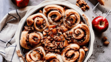 Preparing your Vegan Gooey Cinnamon Roll Apple Pie will take 55 minutes. This recipe will add 340 kcal to your diet per serving. Your dessert will require you to get a number of pieces of equipment. Making your Vegan Gooey Cinnamon Roll Apple Pie will need only four ingredients. These ingredients will be vegan for your eating. You can easily prepare this dessert by following simple steps. The basic ingredients that you will use here will be vegan cinnamon rolls…