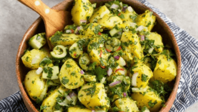 The Vegan Healthy Mediterranean Potato Salad is tasty. This salad conatins 220 calories per serving. Make this dish in 30 minutes. Also, we may pair this Vegan Healthy Mediterranean Potato Salad with hummus, whole grain bread, grilled vegetables, vegan lentil patties, wraps, sandwiches, or fresh fruits. The ingredients are baby potatoes, olive oil, lemon juice, salt, cherry tomatoes, black pepper, dried oregano, red onion, cucumber, fresh parsley, and olives. You may keep this recipe in your refrigerator for three days.…