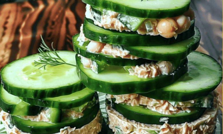 - Your vegan Chickpea “Tuna” Cucumber Stacks are ready to impress your guests.
