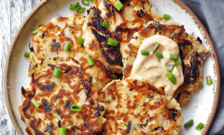 - Your crispy vegan Cabbage Pancakes are ready to serve warm with your choice of dipping sauce.