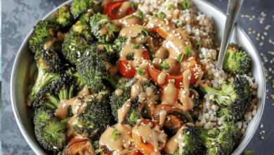 This vegan roasted Broccoli Bowl with Sun Butter Sauce is a healthy, straightforward dish that is full of taste & texture. Roast the broccoli, red peppers, carrots, & onions till the edges are crisp & caramelized. The creamy sun butter sauce, which we make with rice vinegar, soy sauce, low-carb maple syrup, sunflower seed butter, & a little ginger & garlic, is the standout feature. This vegan roasted Broccoli Bowl with Sun Butter Sauce provides warmth and nutrients in one…