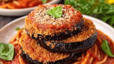 The Vegan Crispy Baked Eggplant Parmesan is tasty. It has 280 calories per serving. Prepare this recipe in 55 minutes. You may serve this Vegan Crispy Baked Eggplant Parmesan at parties, occasions, festivals, or events. The ingredients are eggplants, breadcrumbs, flour, vegan milk, marinara sauce, vegan or mozzarella cheese, olive oil, salt, black pepper, garlic powder, and dried oregano. We will use a baking tray, oven, shallow plates, a knife, baking paper, and mixing bowls to make this dish. Also,…
