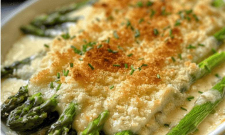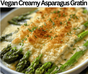 Vegan creamy Asparagus Gratin is a rich and comforting recipe that does not include dairy. It transforms basic asparagus into a silky, oven-baked dish appropriate for both special occasions and weeknights. The vegetables are still soft with a hint of bite, the topping is crispy, and the sauce is smooth. Garlic, onions, and a bit of nutritional yeast add savory flavor, while cashews or coconut milk, depending on your preference, add a mild smoothness. The result is a gorgeous golden bake that provides comfort and freshness.