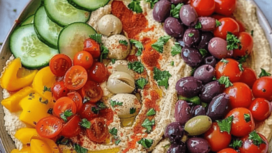 Mediterranean Mezze Hummus PlatterAn all-vegetarian Mediterranean meal. The Vegan Mediterranean Mezze Hummus Platter is an ideal sharing dish, featuring vibrant textures, robust flavors, and fresh ingredients. This colorful dish combines marinated olives, warm pita, crisp vegetables, creamy hummus, and a flavorful dip that evokes the Mediterranean. This Vegan Mediterranean Mezze Hummus Platter is healthy, filling, and completely plant-based, with a perfect balance of fiber, protein, and healthy fats to keep you full and energized. STATS FOR THE RECIPE OF MEZZE HUMMUS PLATTER Cuisine… Read More »