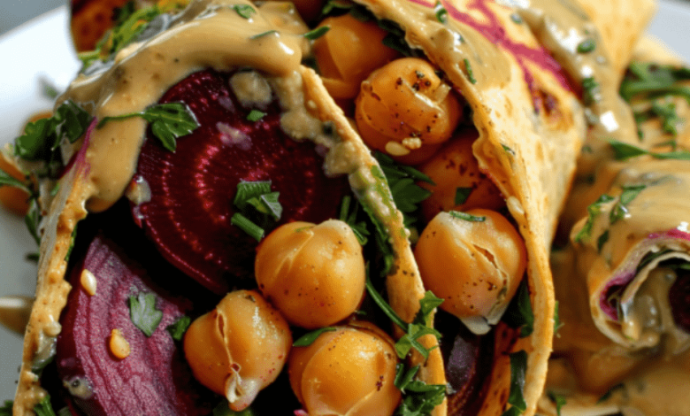 Vegan Roasted Beet & Chickpea Wraps are nutritional, bright in color, and tasty. These are vegetable wraps & they are nutritious. Roasted Beet & Chickpea Wraps are a nice idea for lunch or dinner. The beets are sweet and terrestrial. The chickpeas are tender and are rich in protein. They are delicious, nutritious, and can be served in a tortilla with fresh vegetables and sauce. You can easily prepare these wraps and enjoy them. They are wonderful for preparing a meal or for a week. The dish is a vegan, fiber-enriched & stomach-friendly dish. These wraps are light yet very consuming. Give them a shot to have a new approach to eating lunch.