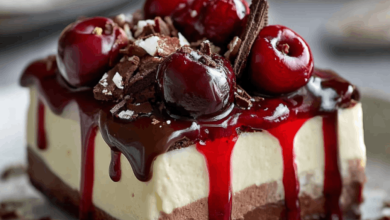 The Vegan Black Forest Cheesecake Symphony is a delicious dessert. There are 305 kcal per serve in this Vegan Black Forest Cheesecake Symphony. Make it for parties, occasions, special treats, or family gatherings. You can also pair this cheesecake with vegan ice creams, fruit, and other desserts. The equipment is not too much for this dessert preparation. We will use vegan chocolate cookies, melted coconut oil, vegan cream cheese, coconut cream, and pitted cherries for this recipe. You can also…