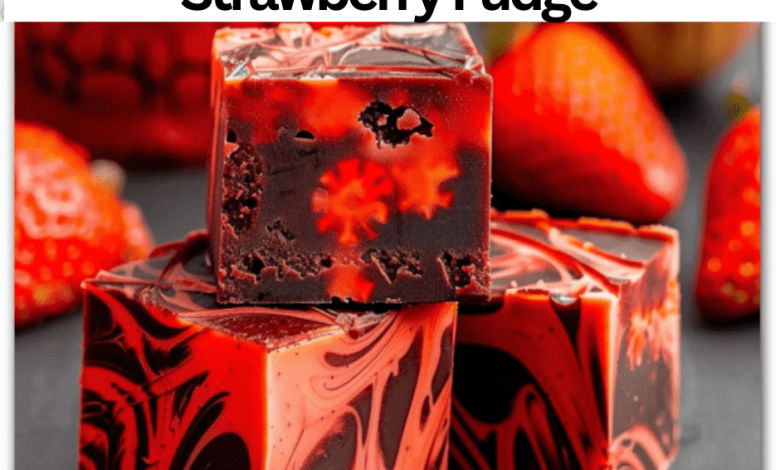 - Your keto Vampire’s Kiss Strawberry Fudge is ready to serve chilled.