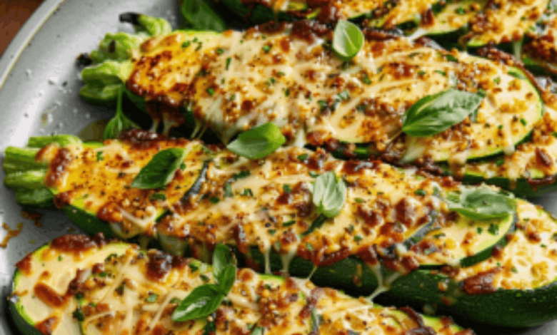 Cheesy Garlic Zucchini Steaks