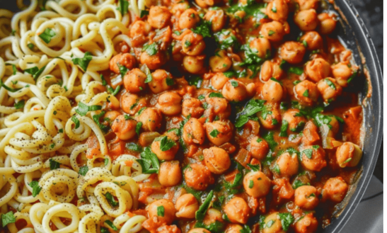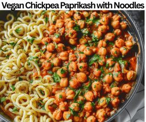 Chickpea Paprikash with Vegan Butter Parsley Noodles is a comforting vegan take on the Hungarian classic. Instead of chicken, chickpeas are the protein source, giving the dish fiber and plant-based nutrients. The sauce is rich & velvety, flavored with sweet paprika, onions, peppers, and a touch of tomato. It pairs perfectly with tender vegan butter parsley noodles, which soak up the sauce beautifully. Chickpea Paprikash with Vegan Butter Parsley Noodles is satisfying, colorful, and perfect for cozy meals at home.