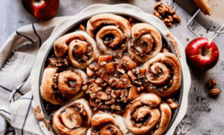 - These cinnamon rolls will help make your basic pie. Cinnamon rolls will make the topping and the crust for your dessert. When you bake it, it will become soft. Your apple pie filling inside it will not fall. Prepare vegan cinnamon roll dough at home for an alternative idea.