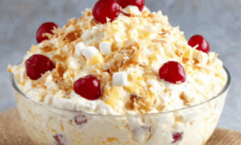 The Vegan Hawaiian Pineapple Coconut Fluff contains 210 kcal, and it prepares in only 1 hour & 15 minutes. Vegan Hawaiian Pineapple Coconut Fluff is safe for dairy allergic peoples. We require very basic equipment’s & ingredients to prepare this fluff. It contains mini vegan marshmallows, crushed pineapple, vegan whipped topping, & coconut cream. Serve this dessert in family gatherings, parties, or occasions & pair it with desserts, breakfasts, or fruits.
