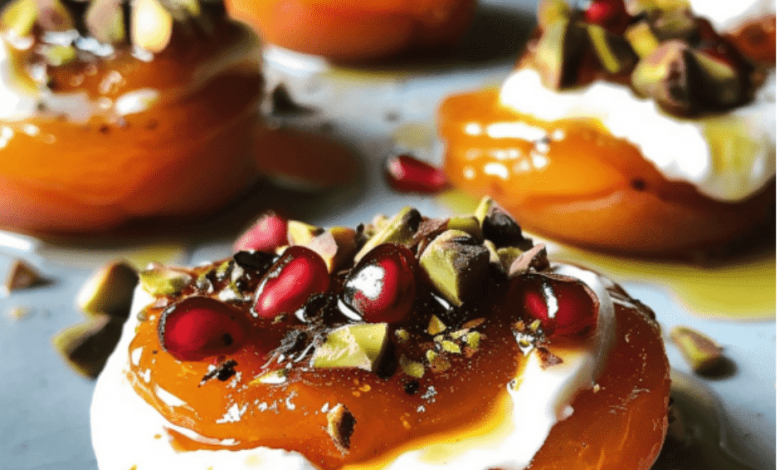 These Vegan Caramelized Apricot Nibbles with honeyed labneh, pistachios, and pomegranate strike the perfect balance between creamy, crunchy, and sweet. Caramelized apricots, creamy vegan labneh, vegan honey, and a colorful and fresh garnish of pomegranate seeds and pistachios pop in every bite. These Vegan Caramelized Apricot Nibbles with honeyed labneh, pistachios, and pomegranate are simple to make using plant-based ingredients and have a classy appearance.