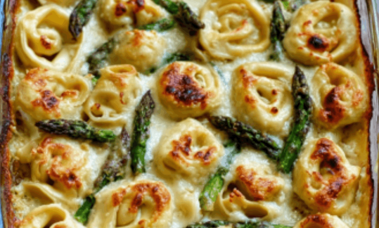 Vegan Oven-Baked Asparagus Cheese Tortellini