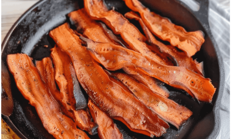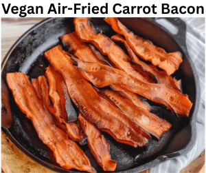 Vegan Air-Fried Carrot Bacon is a smoky, savory, and slightly sweet snack that tastes & somewhat like regular bacon without actually having any meat in it; the component is all carrots. Slices of carrot are soaked in a mixture of mild spices & then fried to a crispy outside & soft inside by the use of air frying. It is an enjoyable plant-based product that may be served as breakfast, in sandwiches/used as a snack. Vegan Air-Fried Carrot Bacon can be made quite fast, with just a few ingredients, and can be made oil-free as well.