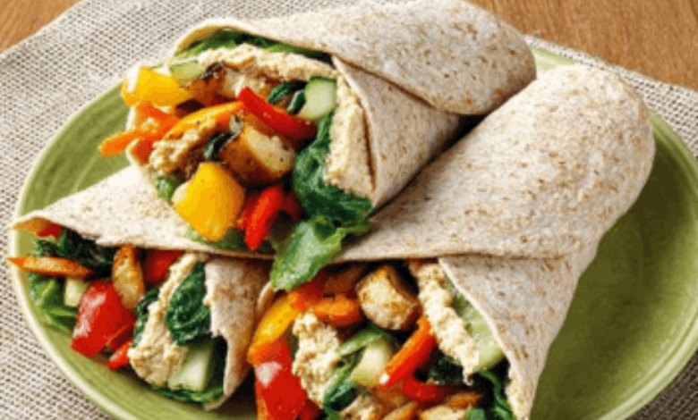- Now heat your whole wheat wraps to make them soft and add hummus to each wrap.