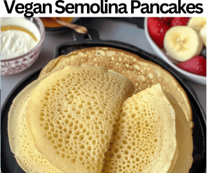 Vegan Semolina Pancakes are a delicious twist on traditional breakfast favorites. They are light and fluffy, with a hint of crunch around the edges. These pancakes are made with healthy semolina (sooji) and have a satisfying, nutty texture that complements both savory and sweet toppings. This Vegan Semolina Pancakes recipe yields golden pancakes with a subtle crunch that makes each bite irresistible. Serve these semolina pancakes with vegan butter, maple syrup, or a dollop of coconut yogurt and fresh fruit.