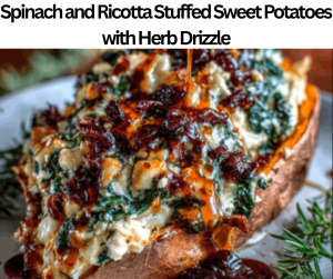 The Vegan Spinach and Ricotta Stuffed Sweet Potatoes with Herb Drizzle is a tasty meal. You will need 60 minutes to prepare this dish. It has 320 calories per serving. We may also serve this recipe at parties, functions, occasions, birthdays, or as a meal treat to yourself. You may also pair this Vegan Spinach and Ricotta Stuffed Sweet Potatoes with Herb Drizzle with fresh garden salad, cucumber tomato sauce, lemon arugula salad, quinoa pilaf, lentil patties, grilled tofu, or brown rice bowl. This recipe includes sweet potatoes, vegan ricotta cheese, fresh spinach, olive oil, garlic, lemon juice, black pepper, fresh parsley, and basil. You may also store this dish for three days in your refrigerator.