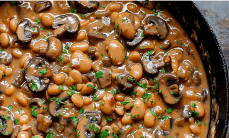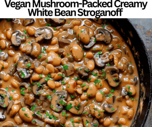 This vegan mushroom-packed creamy White Bean Stroganoff is the plant-based version of the traditional Russian dish. It is filling, substantial, and high in protein. Instead of sour cream and beef, this version uses white beans and cashew or coconut cream, resulting in a smooth, dairy-free sauce that is just as rich and filling. Soy sauce, earthy mushrooms, and fragrant herbs add a hint of umami to the dish, giving it an impressive depth of flavor. This vegan mushroom-packed creamy White Bean Stroganoff is perfect for comforting dinners and pairs well with mashed potatoes, pasta, or rice.